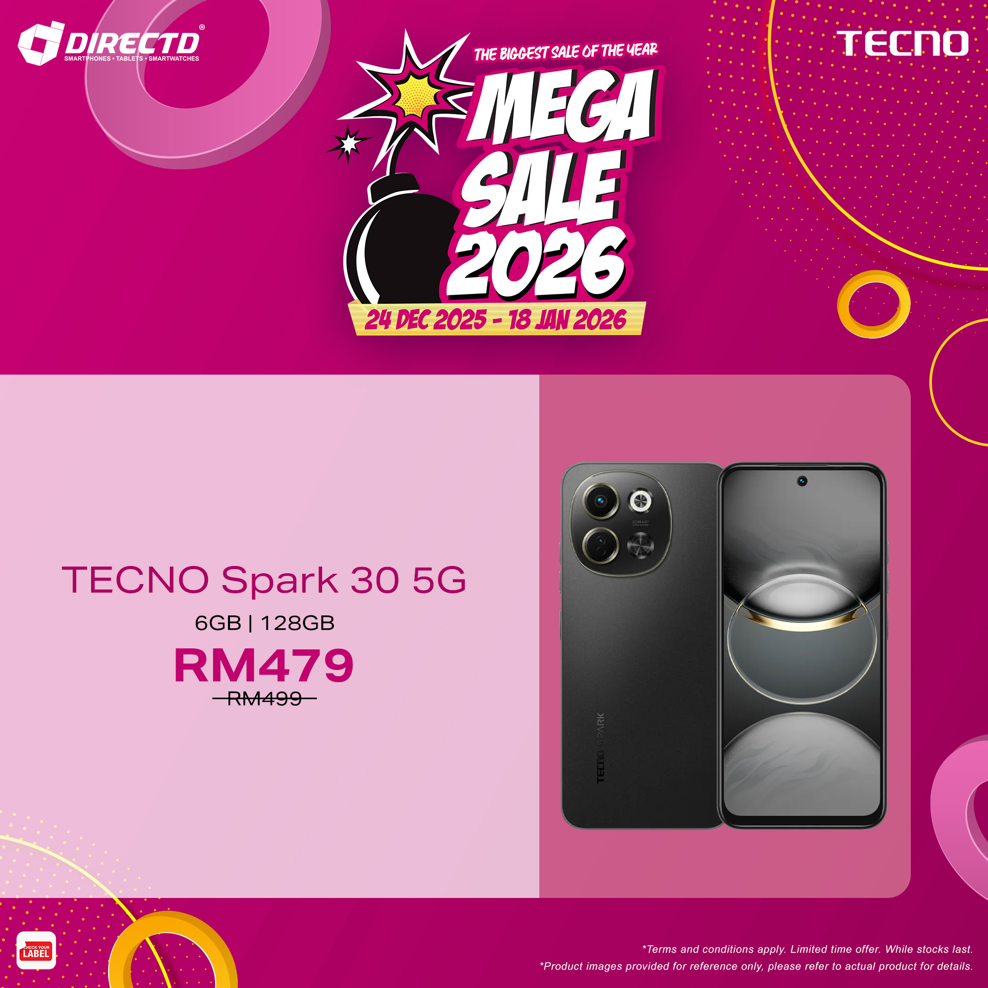 ORIGINAL set, comes with a 12+1 Months Warranty by TECNO Malaysia